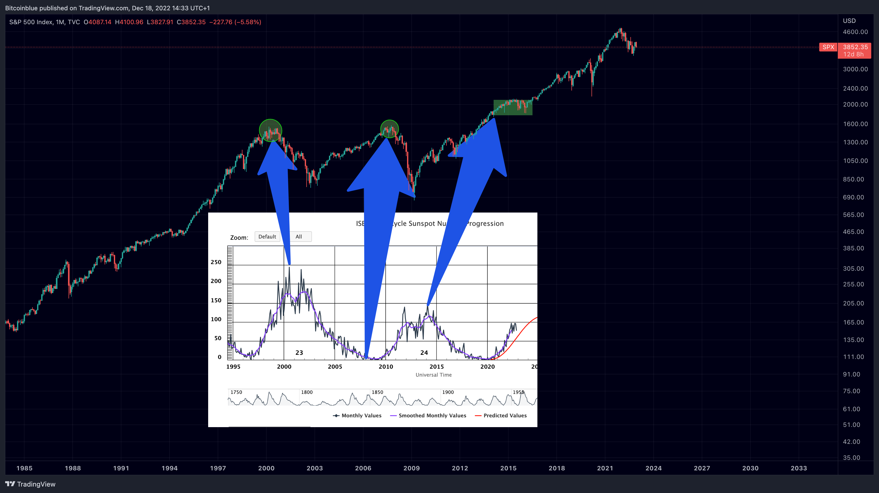 There are two ways to use the sunspot cycle for Bitcoin price prediction.
