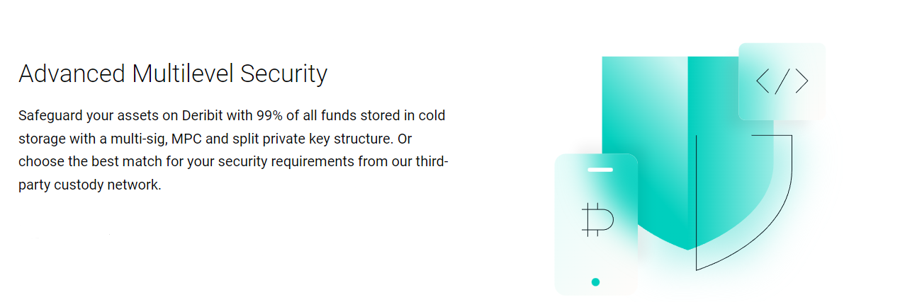 Deribit places a high emphasis on security with its 2FA security feature, which is flexible and allows multiple Yubikey devices or TOTP authenticators to be added. High trade volume clients or "Market Makers" have access to advanced financial security features such as custodial provider integration. This feature is available for both corporate and individual clients. Further, to mitigate counterparty risks, Deribit has integrated with Cobo and Copper custodians, allowing clients to keep funds off the exchange, minimize third-party risk, and avoid dependence on blockchain processing times.